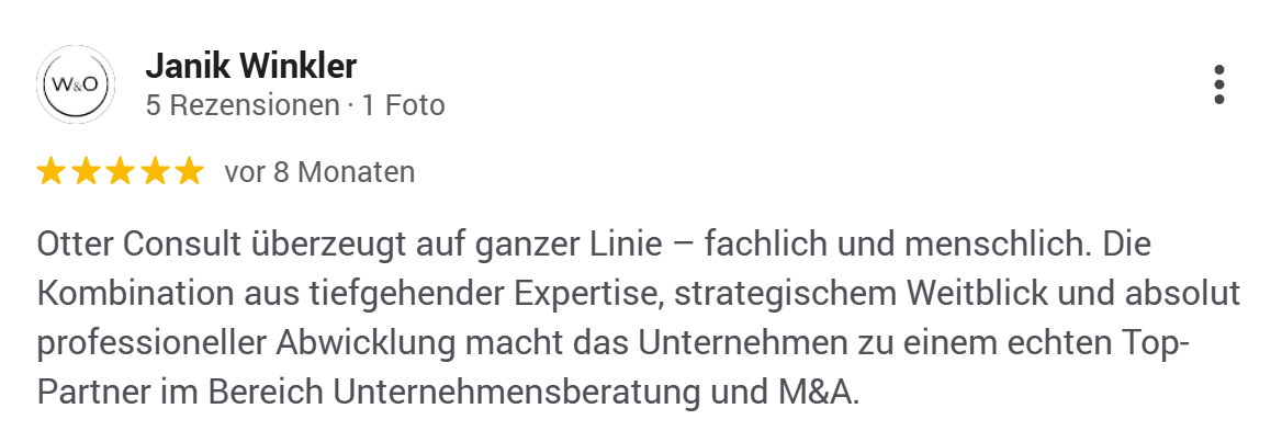 Du bekommst 10 % auf unsere Beratungs- und M&A-Provision. Wie viel das genau ist, hängt vom Transaktionsvolumen ab. Bei den meisten Transaktionen sind das mehrere Tausend Euro – bei größeren Deals auch mal Zehntausende Euro.